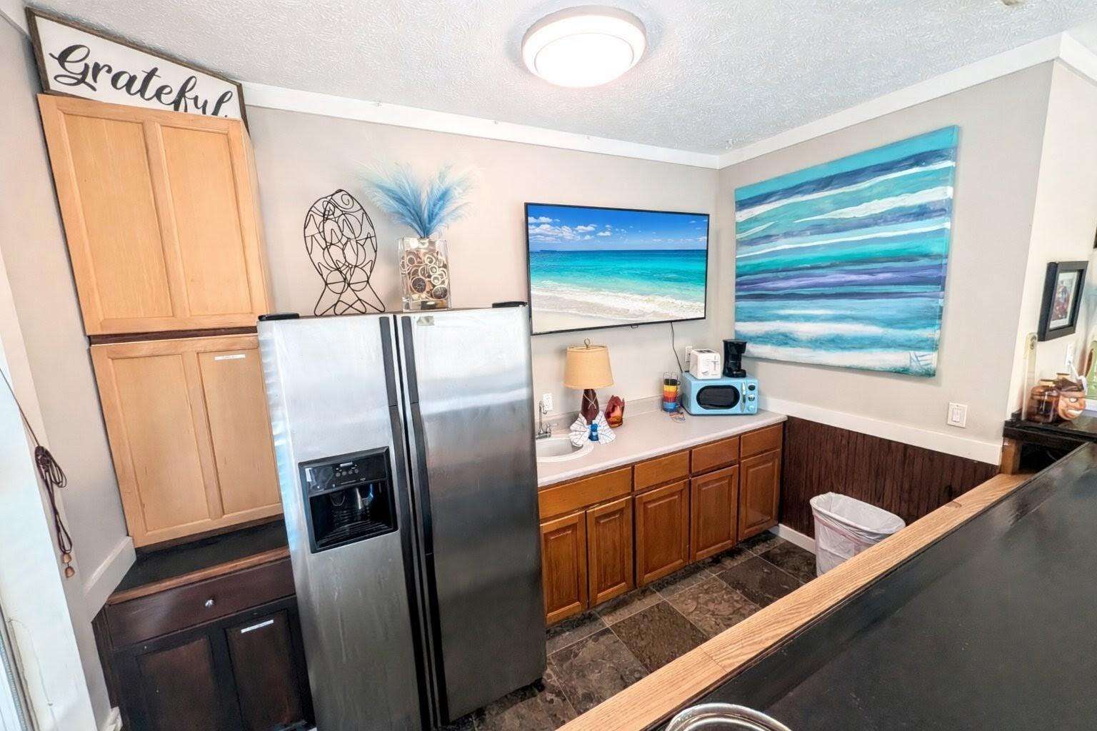 Pool Cabana Kitchenette with Full Size Fridge and plenty of counterspace and cabinets