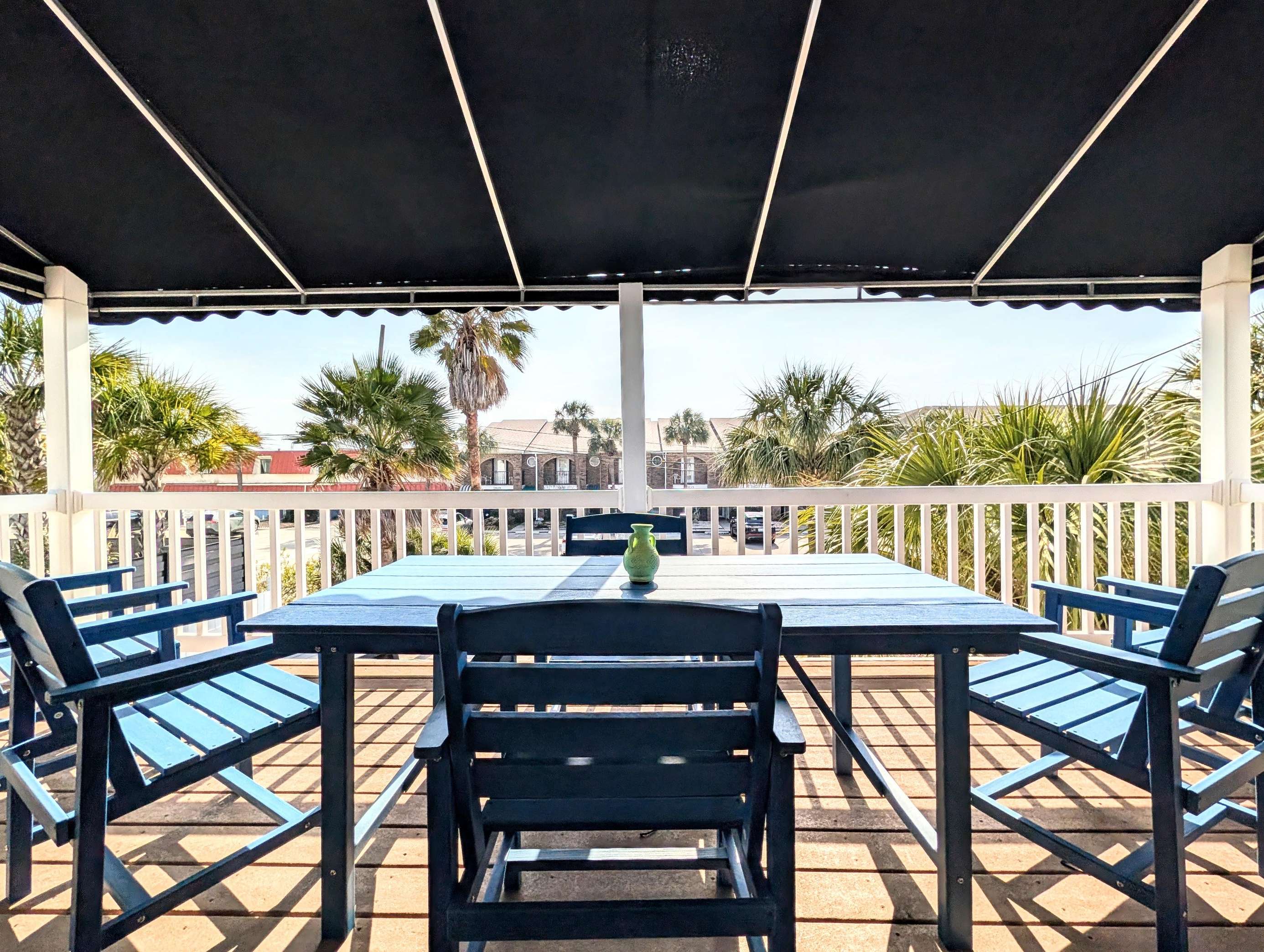 Shaded outdoor dining for relaxing meals