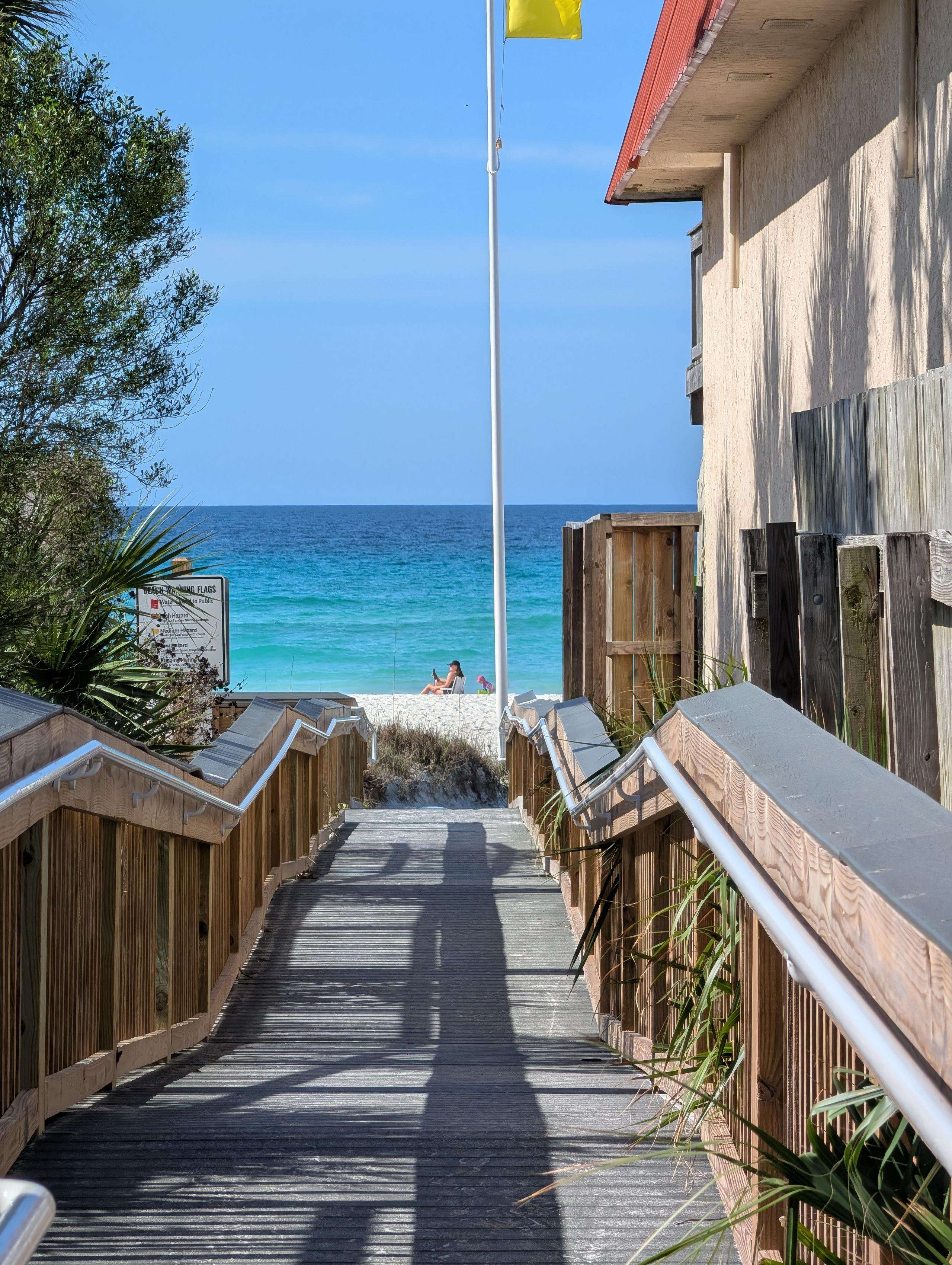 60 steps away is Beach Access #16 with recently upgraded wheelchair accessible components such as handrail and mobility mat to help guests with disabilities reach the sand.