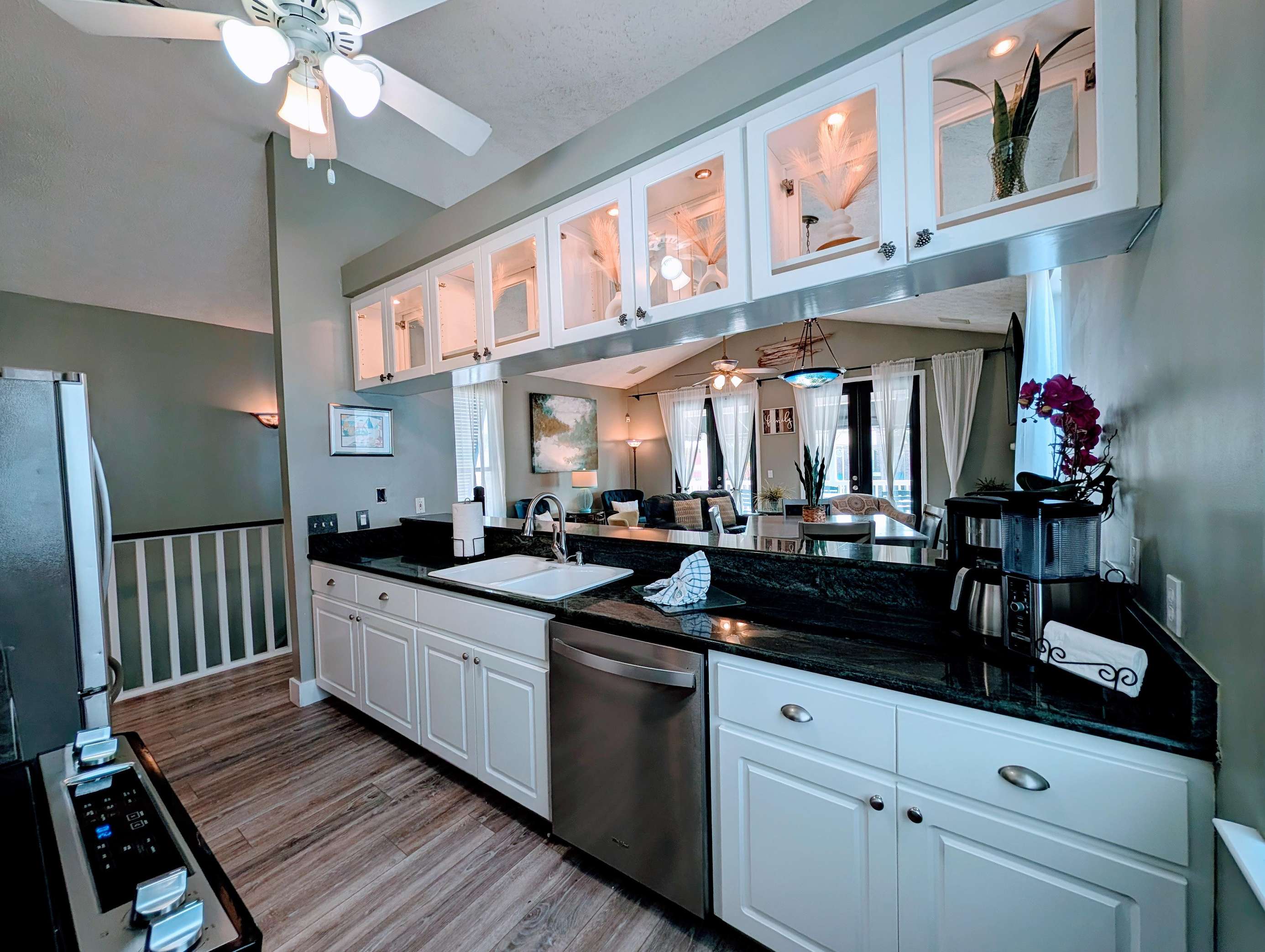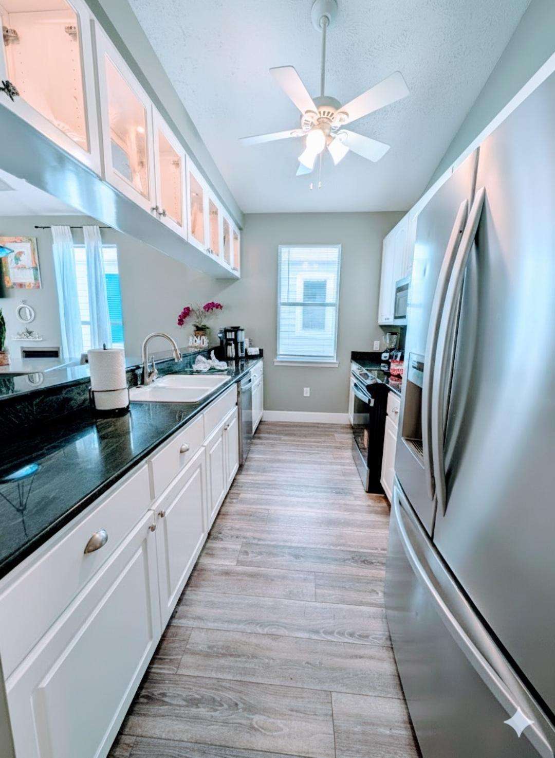 Bright, modern kitchen with sleek granite countertops and stainless steel appliances