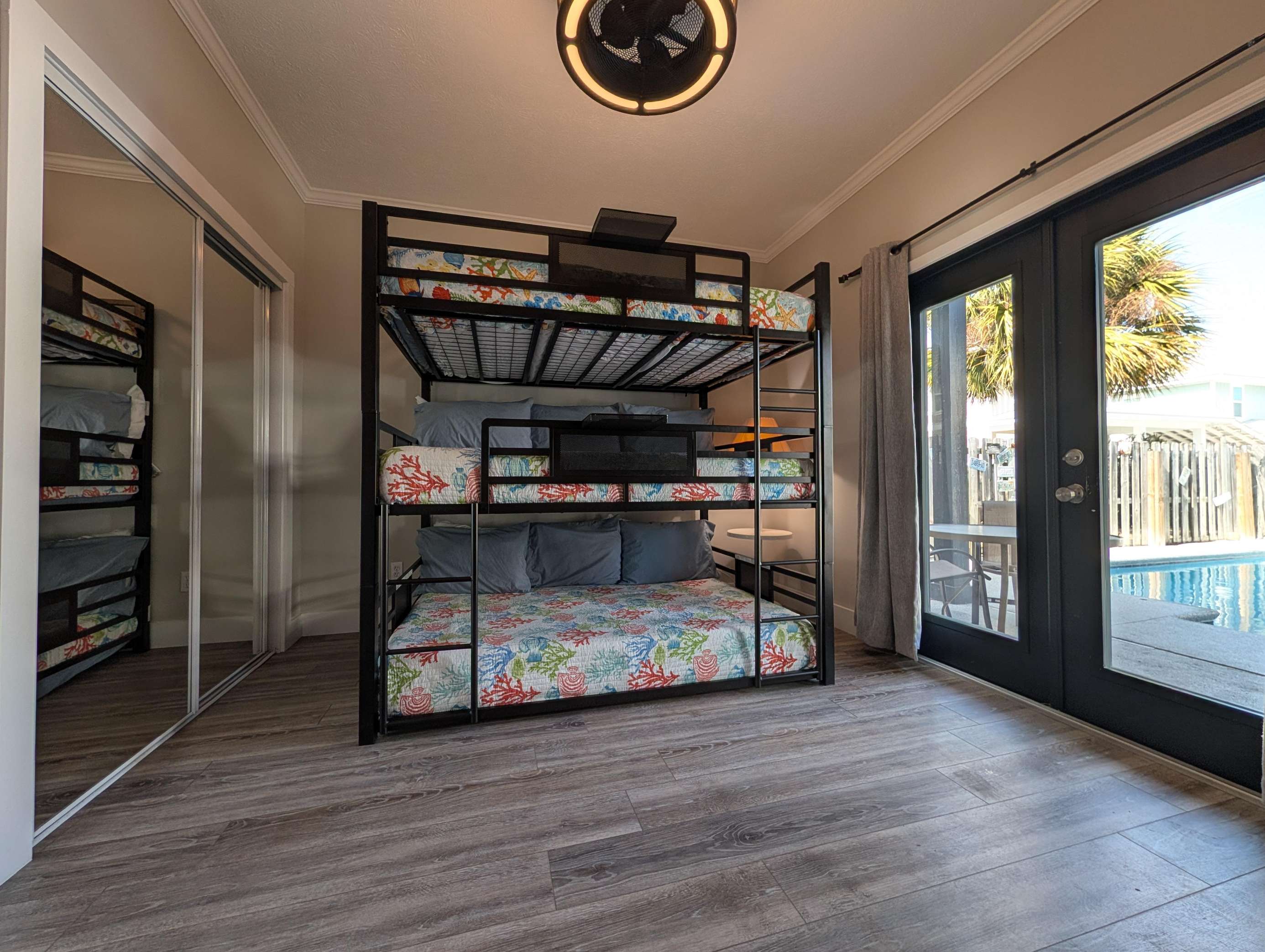 1st Floor 2nd Bedroom with Triple Queen bunks and pool access