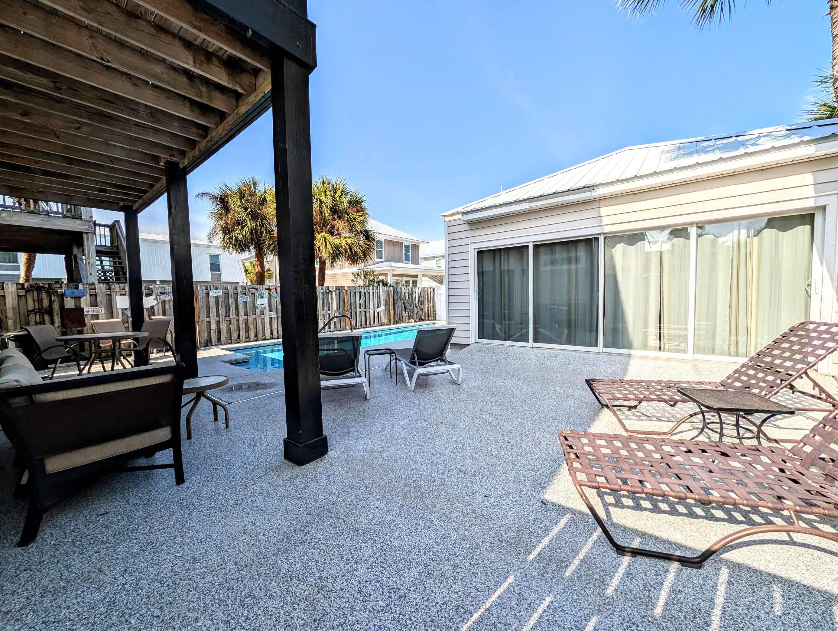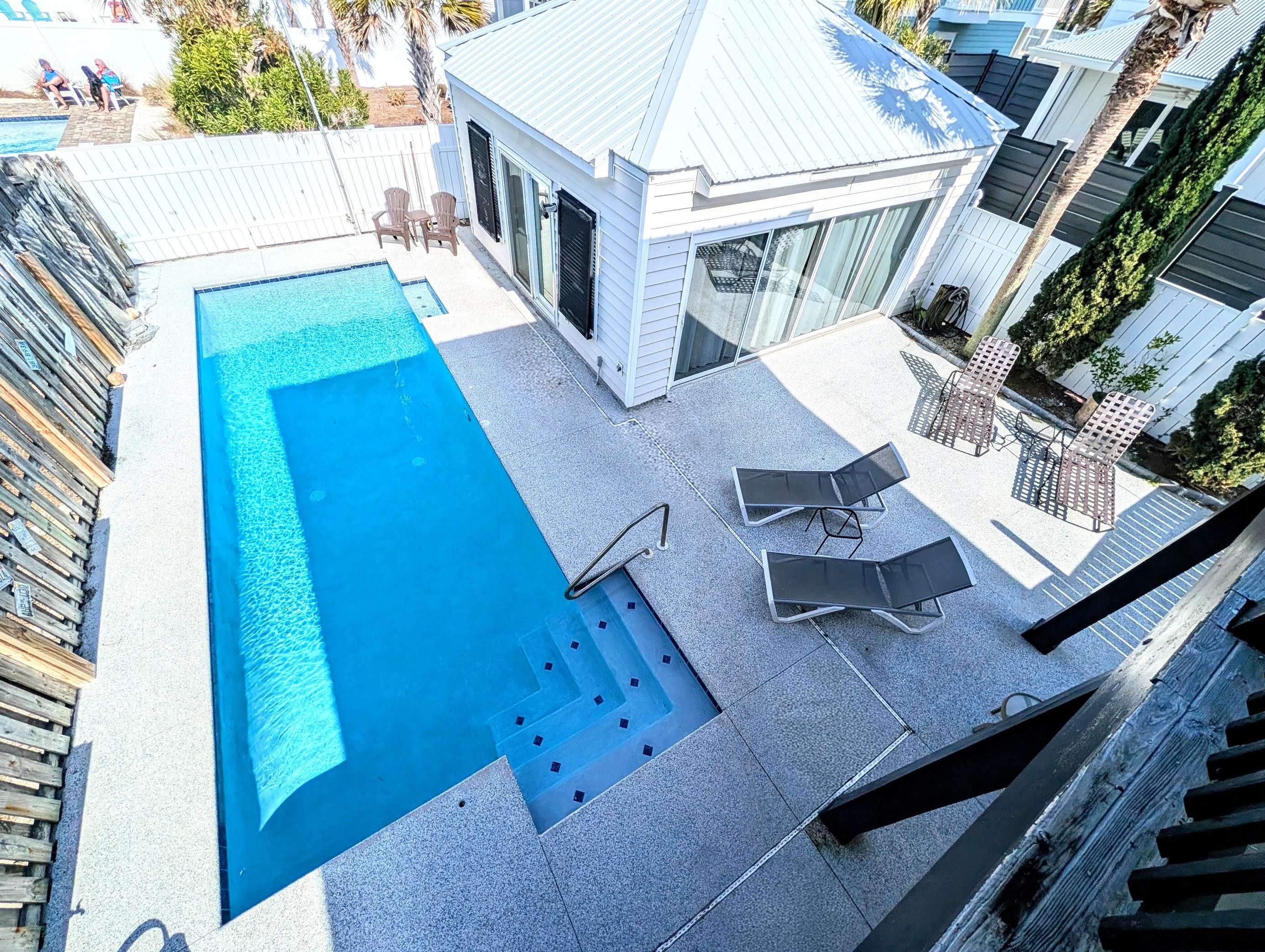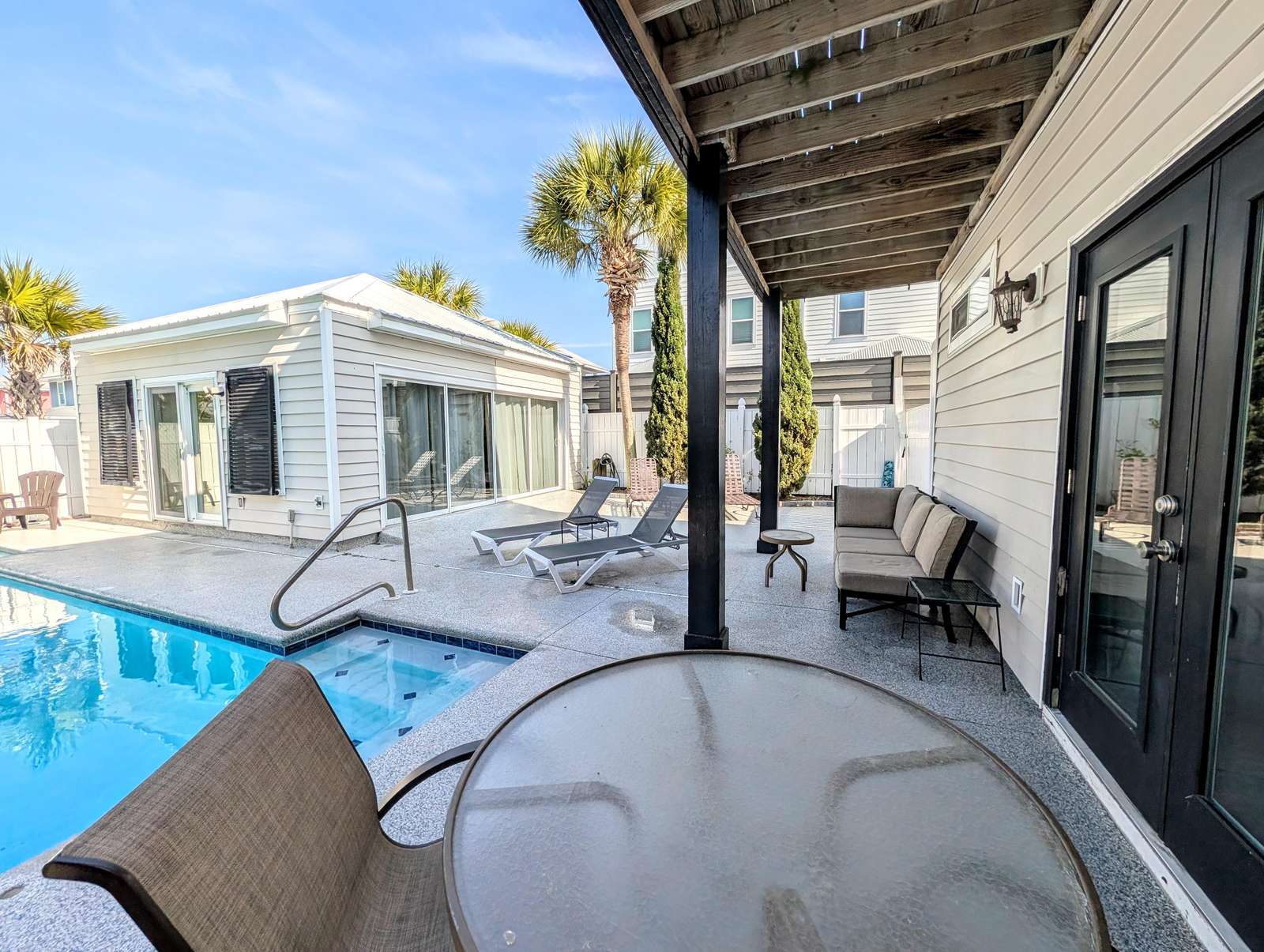 Sun-soaked patio with private pool and cozy seating