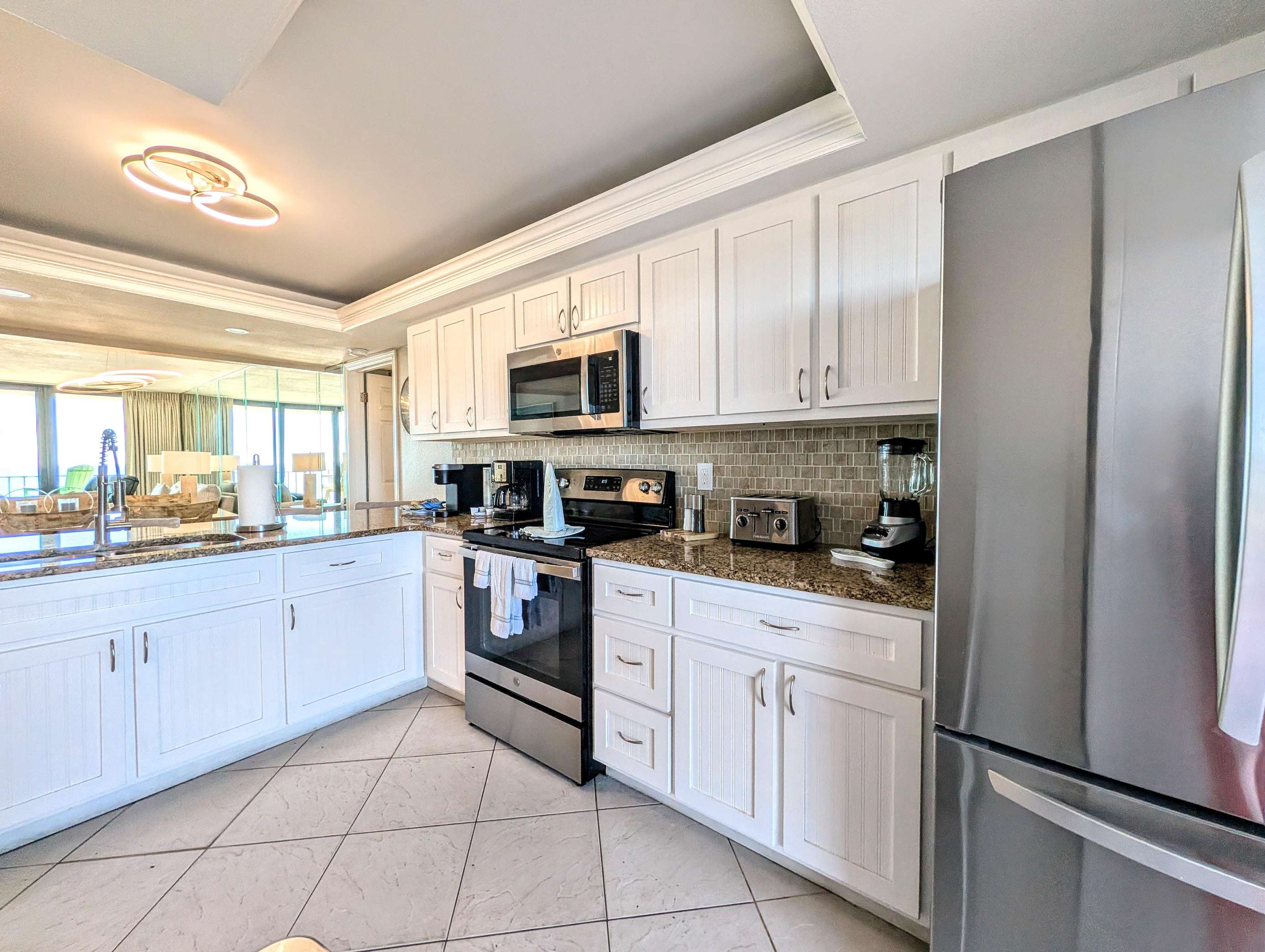 BRAND-NEW to Rentals Winter 2025!! This fully furnished Beachfront condo is located in beautiful Edgewater Beach Resort and is a 3 bedroom, 3 bath deluxe unit that is full of updates including but not limited to: Refined Furniture throughout; Capacious Kitchen includes multiple upgrades such as reconfigured floorplan to allow additional cabinets, large Granite Counter-Top and Generous Appliances; Elegant Lighting & Contemporary Coastal Décor. Balcony access from the Living Room & Master Suite overlooks the Tower III pool and Worlds Most Beautiful Beaches! The Master Suite has King size bed, Comfy chair/ottoman sitting area and private bath, walk in shower and closet. Guest bedroom has 2 Queens and access to Guest Bathroom. 3rd Master Ensuite includes 2 Full Beds, large closet and Private Bath with stand-up shower. Sleeps 10 comfortably! Guaranteed CLEAN, you will NOT be disappointed! **Must be 25 years of age or older to reserve and Occupy!