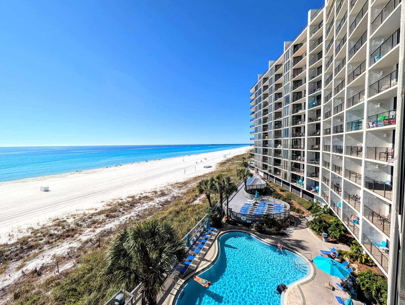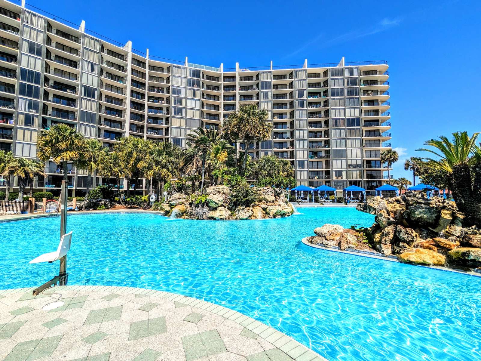 Edgewater is one of the finest full service beach resorts in PCB, on the beautiful white sand beaches of the Gulf of Mexico. Exclusive amenities include 11,800 sq.ft. lagoon Pool with waterfalls & tropical landscaping, 9 heated pools(seasonal), 4 hot tubs, Peak Season Pool side activities/live music, Pizza Shack, Ocean's full service restaurant & bar, Edgie's/Starbucks Coffee Shop/Ice Cream Parlor, Spa, Fitness Center, Pro Shop, Executive 9 hole Golf Course, & 11 lighted Tennis/Basketball courts. Free Access to Sports Courts and Fitness Center. Equipment Rental and 9 Hole Golf Course are additional cost.
