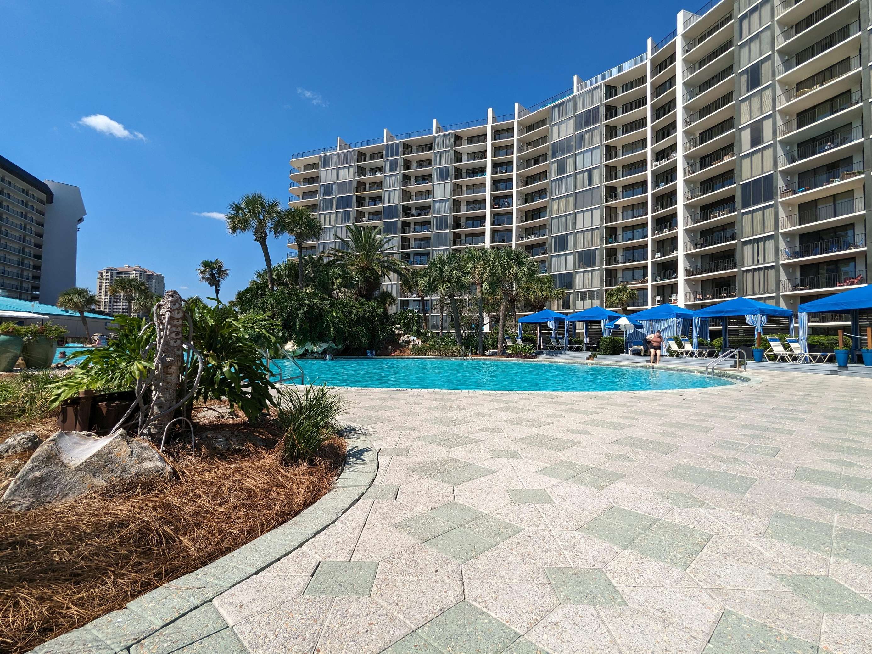 Edgewater is one of the finest full service beach resorts in PCB, on the beautiful white sand beaches of the Gulf of Mexico. Exclusive amenities include 11,800 sq.ft. lagoon Pool with waterfalls & tropical landscaping, 9 heated pools(seasonal), 4 hot tubs, Peak Season Pool side activities/live music, Pizza Shack, Ocean's full service restaurant & bar, Edgie's/Starbucks Coffee Shop/Ice Cream Parlor, Spa, Fitness Center, Pro Shop, Executive 9 hole Golf Course, & 11 lighted Tennis/Basketball courts.