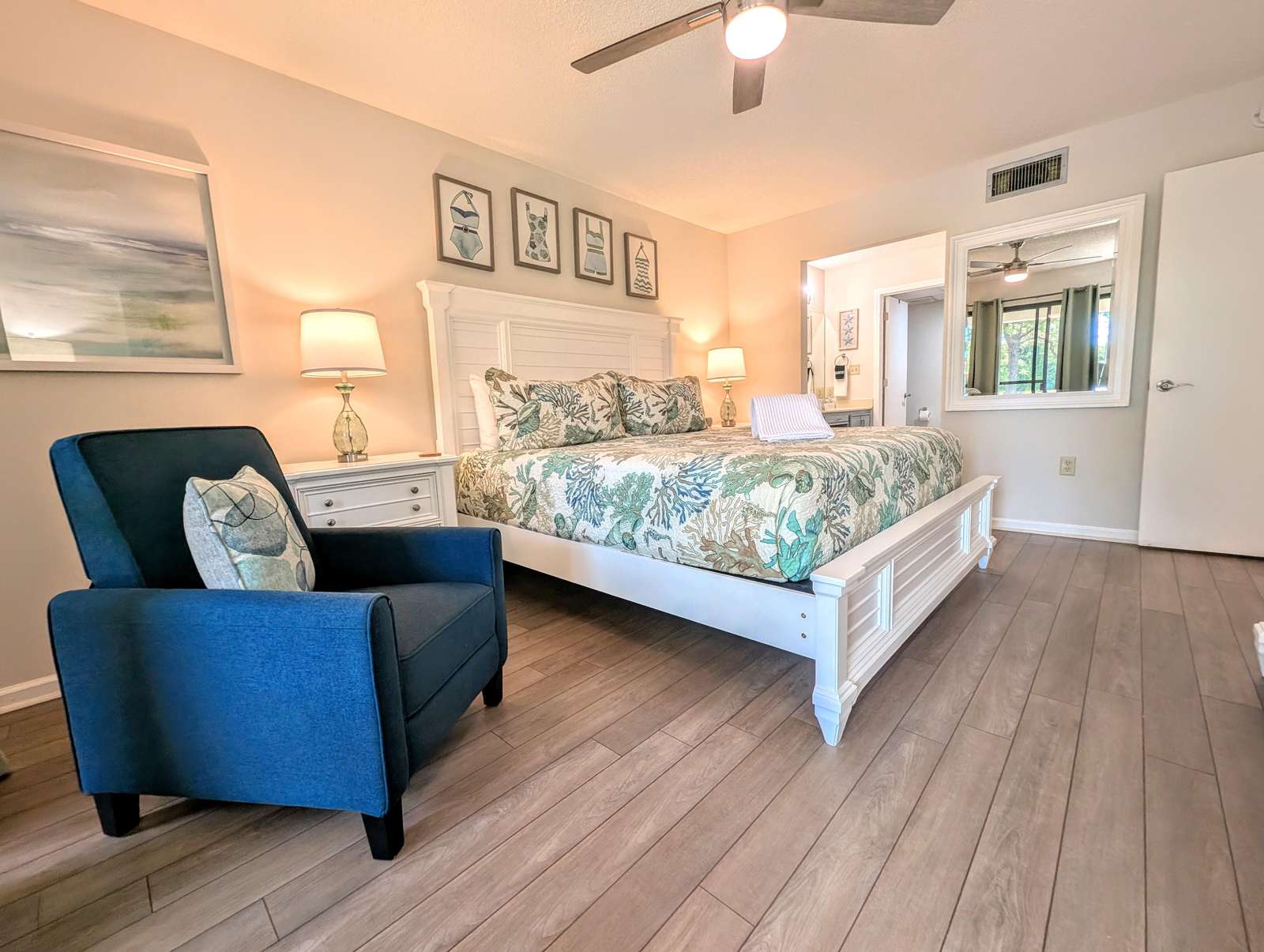Villas are not Beachfront however within walking distance or a quick Tram Ride! This fully furnished Recently Updated Golf Villa is located in beautiful Edgewater Beach Resort and is a 2 bedroom, 2 bath deluxe ground floor Villa. This unit has been Recently updated with New: ALL NEW Furniture, Main area and master Bedroom flooring, Granite countertops, Appliances, Lighting & décor. Patio leads to living room & master suite. The master suite has a King size bed & the Junior suite has 2 queen beds & access to guest bathroom. Small patio also connected to guest bedroom. A queen sleeper sofa in the living room...sleeps 8 comfortable. Very neat & guaranteed CLEAN, You will NOT be disappointed! **Must be 25 years of age or older to reserve and Occupy!