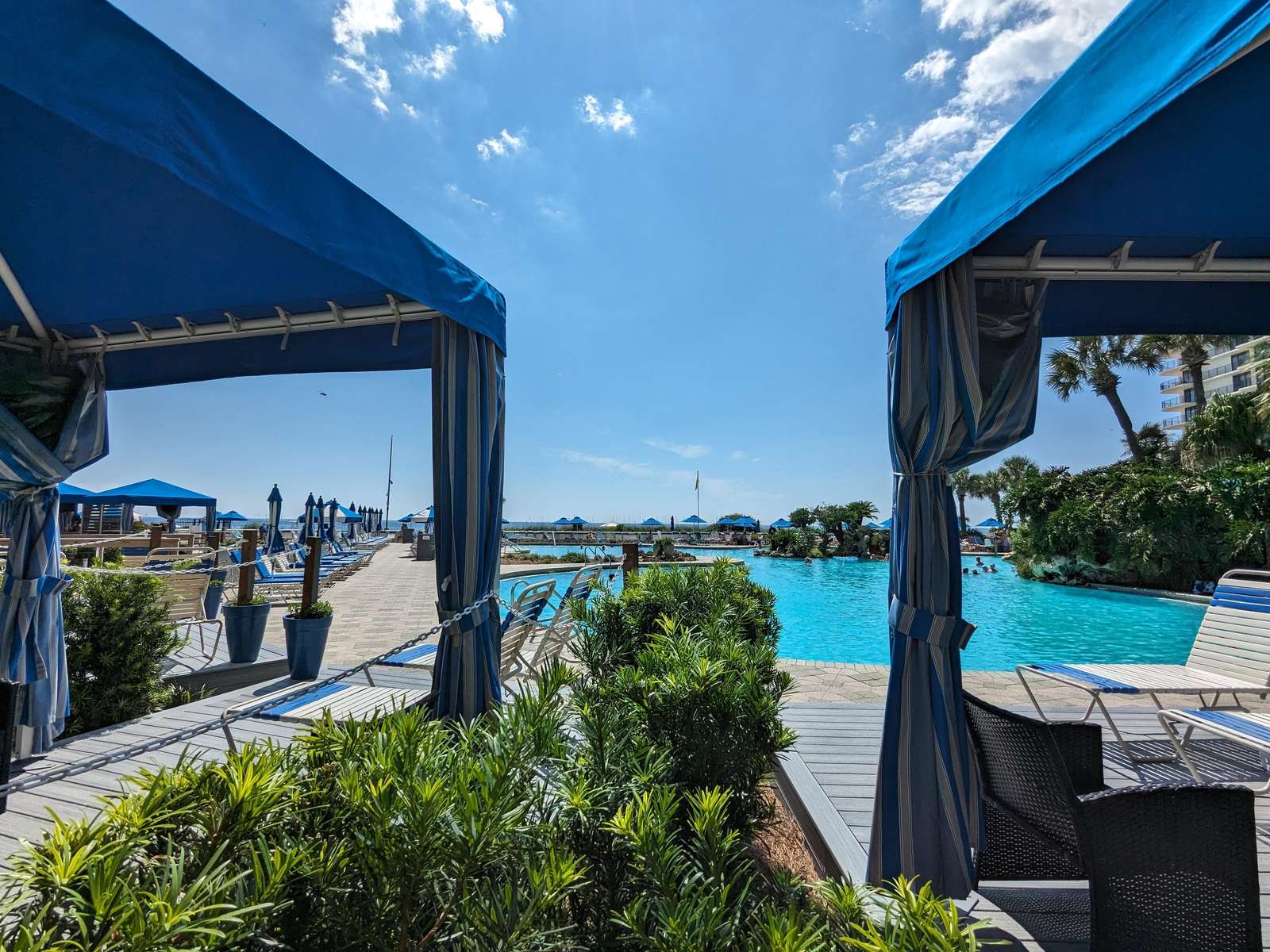 Edgewater is one of the finest full service beach resorts in PCB, on the beautiful white sand beaches of the Gulf of Mexico. Exclusive amenities include 11,800 sq.ft. lagoon Pool with waterfalls & tropical landscaping, 9 heated pools(seasonal), 4 hot tubs, Peak Season Pool side activities/live music, Pizza Shack, Ocean's full service restaurant & bar, Edgie's/Starbucks Coffee Shop/Ice Cream Parlor, Arcade, Spa, Fitness Center, Pro Shop, Executive 9 hole Golf Course, & 11 lighted Tennis/Pickleball/Basketball courts. Free Access to Sports Courts and Fitness Center. Equipment Rental and 9 Hole Golf Course are additional cost.
